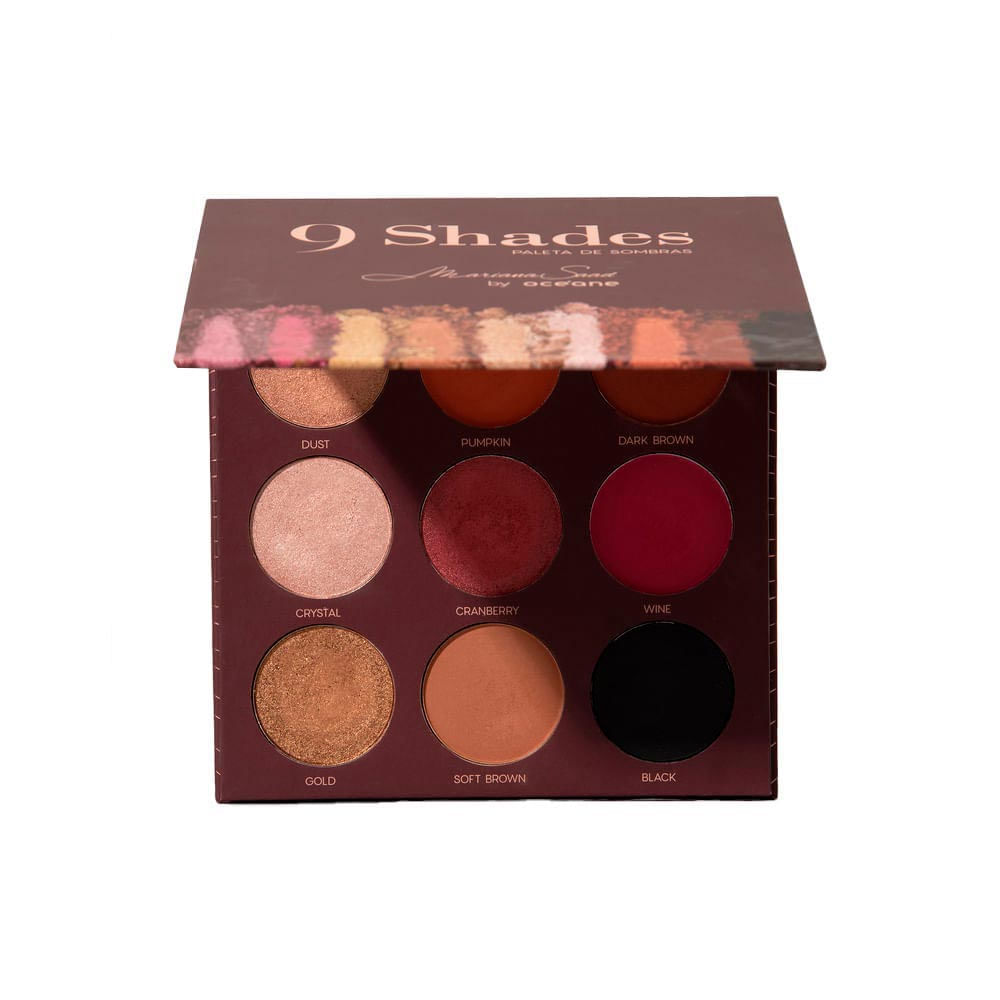Paleta de sombras de 9 Shades Mariana Saad by Océane, traz 5 tons opacos e 4 cintilantes. Seus tons variados são versáteis, permitindo que você crie visuais para qualquer ocasião.