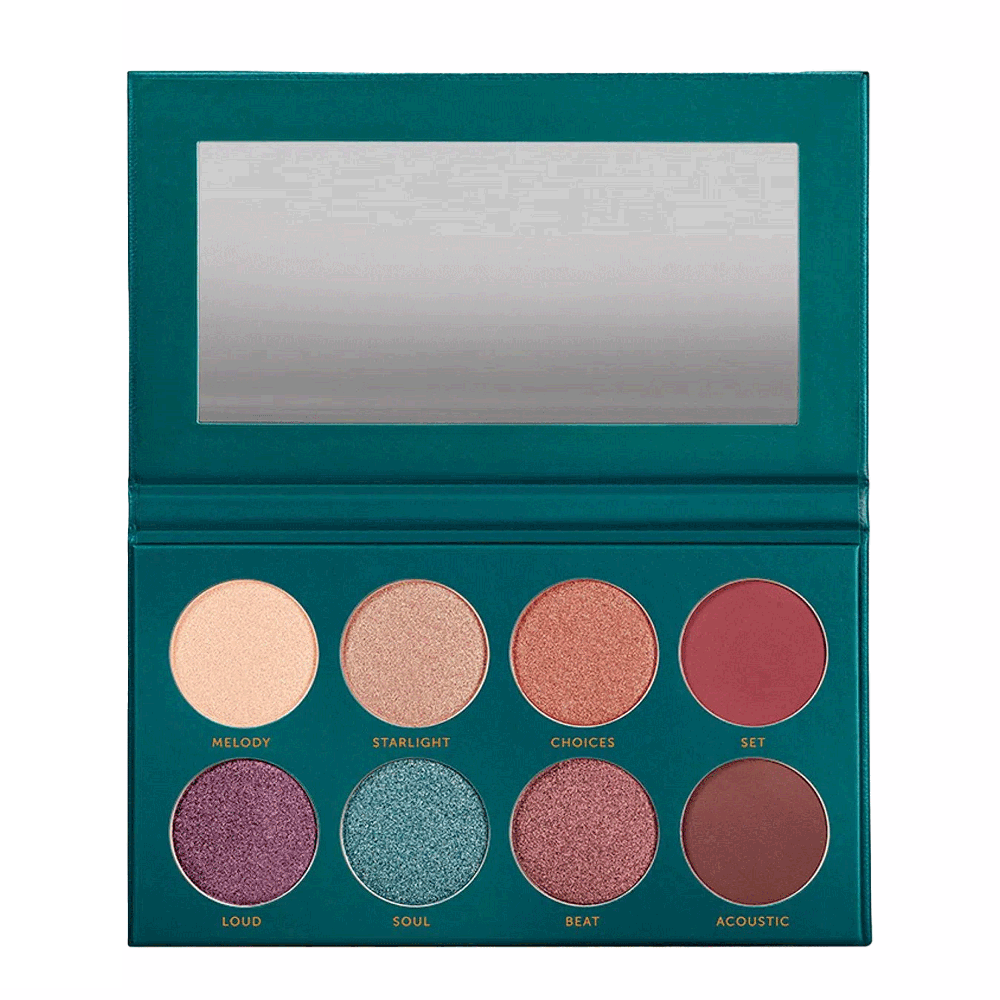 Nessa versão da paleta, você encontra oito tonalidades diferentes, sendo três opções com acabamento mate e cinco cintilantes. As cores são voltadas para os tons terrosos.