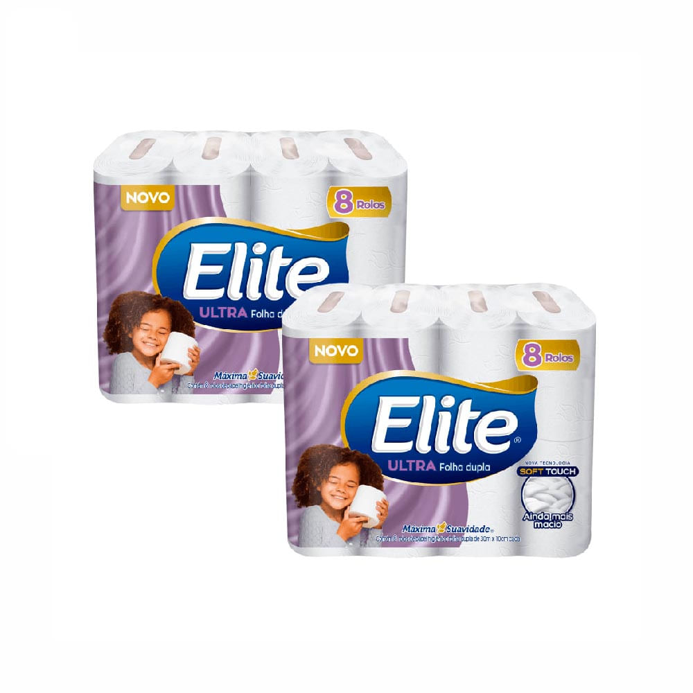 Kit com 2 pacotes de Papel Higiênico Folha Dupla Elite com 8 rolos cada