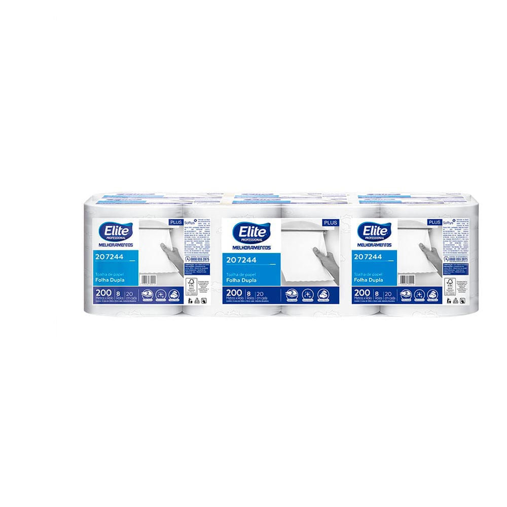 Papel Toalha Rolo Plus Elite Professional 8 Rolos Folha Dupla 200 M