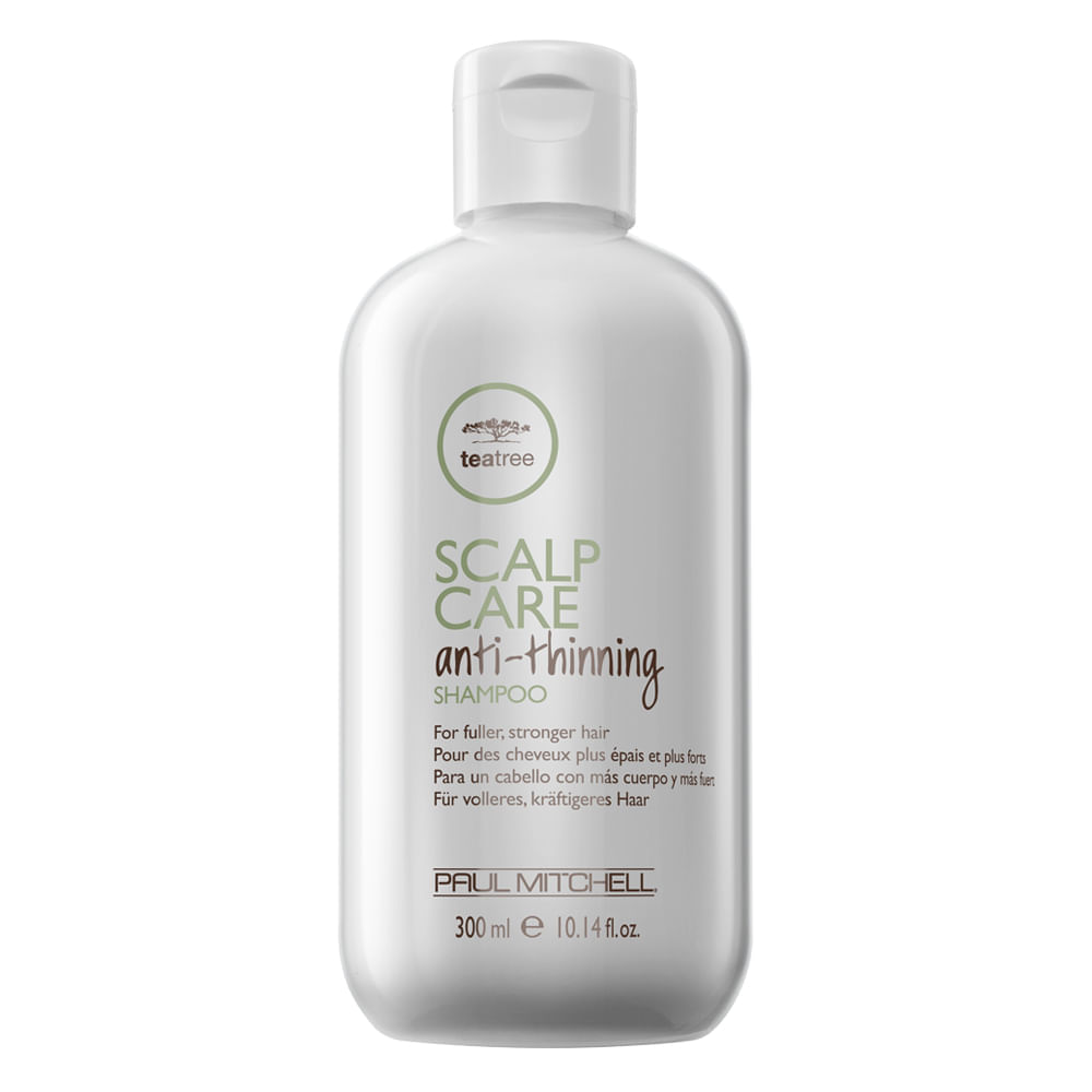 O Shampoo da linha Tea tree Scalp Care Anti Thinning de Paul Mitchell é um Shampoo suave , seguro para cabelos com coloração, remove impurezas e prepara o couro cabeludo para receber o complemento do tratamento Anti Thinning, enquanto da volume ao diâmetro do fio de cabelo.