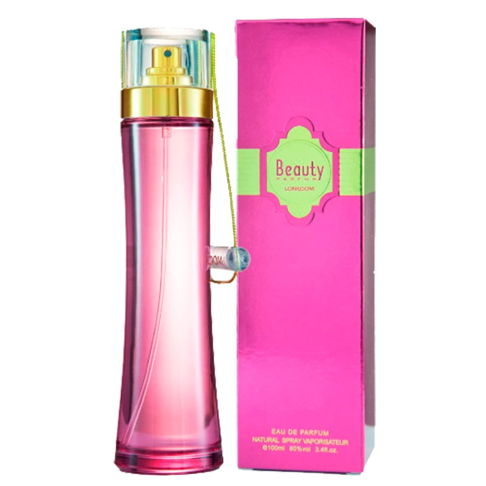 O produto é o Beauty Eau de Parfum da marca Lonkoom. Trata-se de uma fragrância que oferece uma doce tentação de sensualidade.
