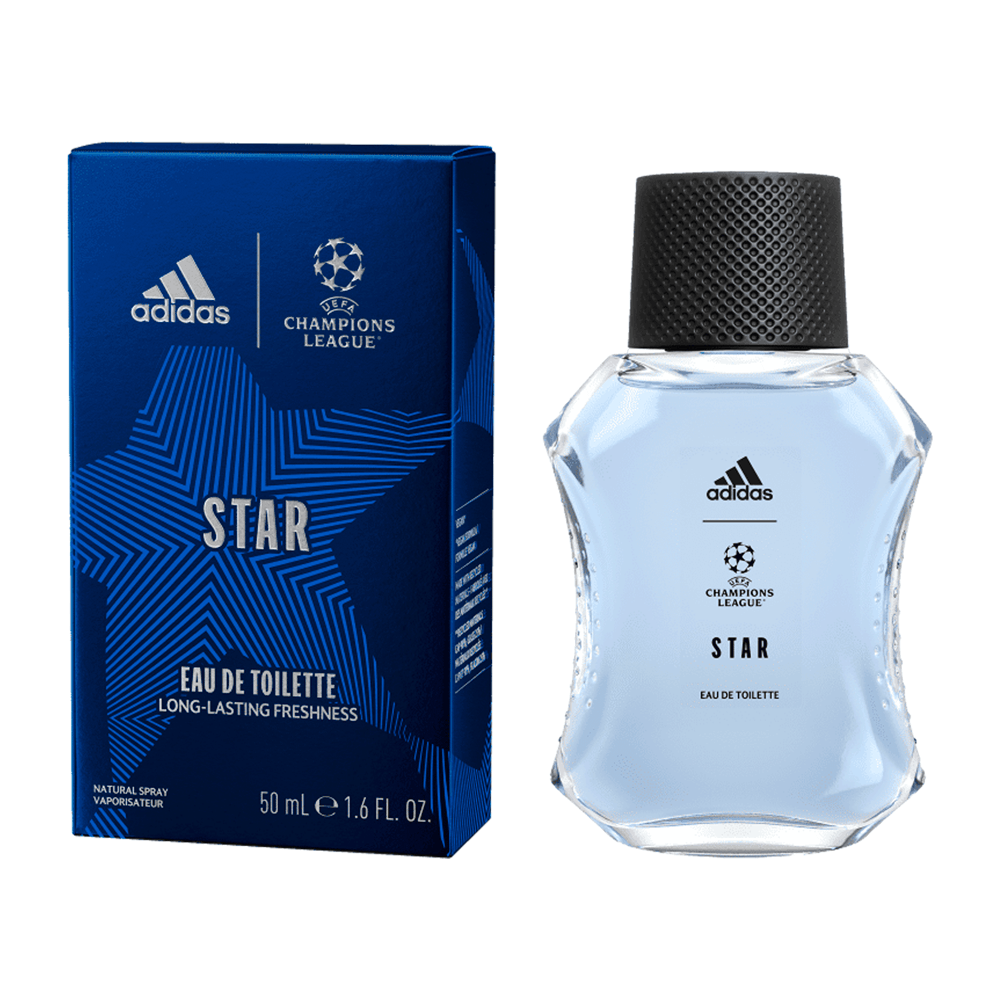 Perfume masculino com a fragrância Star Champions League da Adidas, ideal para homens que buscam uma essência esportiva e marcante.