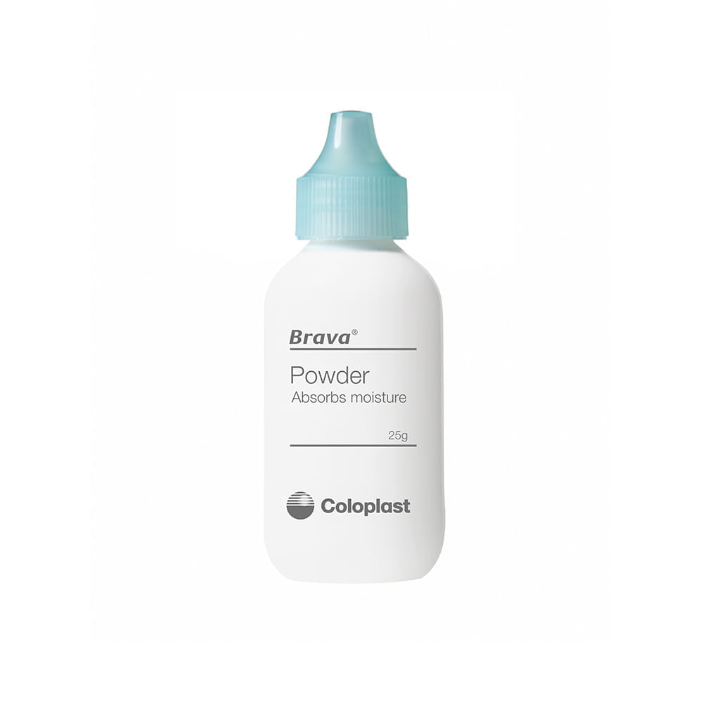 O pó Brava, reduz a irritação da pele relacionada à umidade. Protege a pele periestomal absorvendo a umidade para que a pele se mantenha seca. Pode ser usado em torno do estoma ou sob o adesivo.