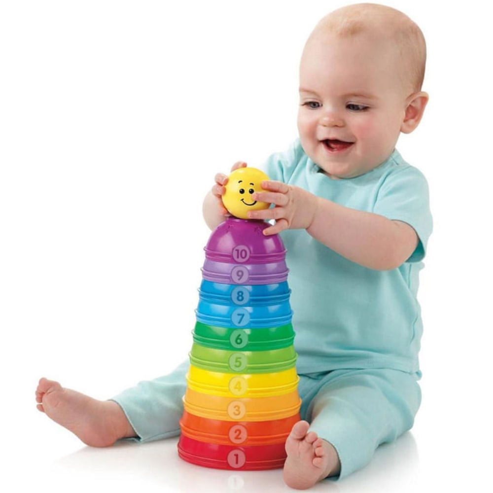Os Potinhos Empilhar & Rolar da Fisher-Price são brinquedos projetados para animar e entreter bebês. Este conjunto inclui dez potes de empilhar e uma bolinha sorridente para colocar no topo da pilha.