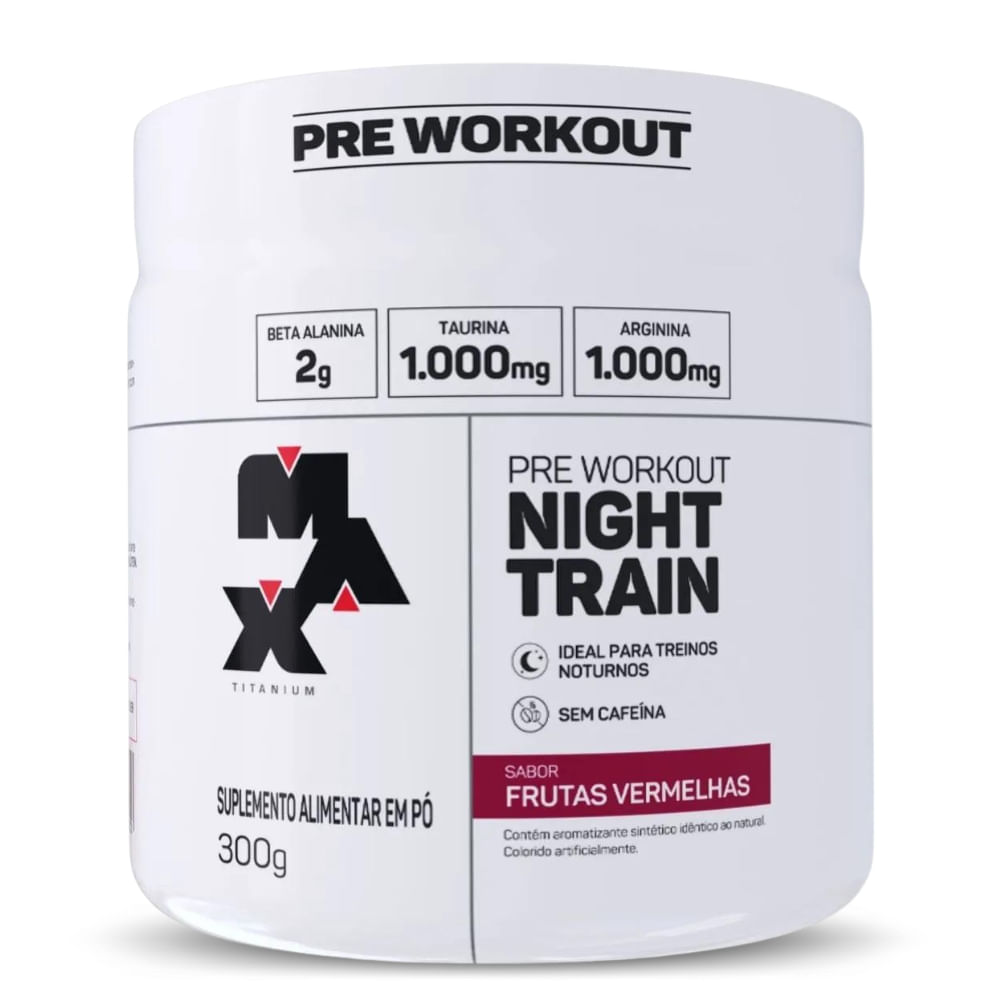 Pré-treino Night Train Sem Cafeína Max Titanium Sabor Frutas Vermelhas 300g