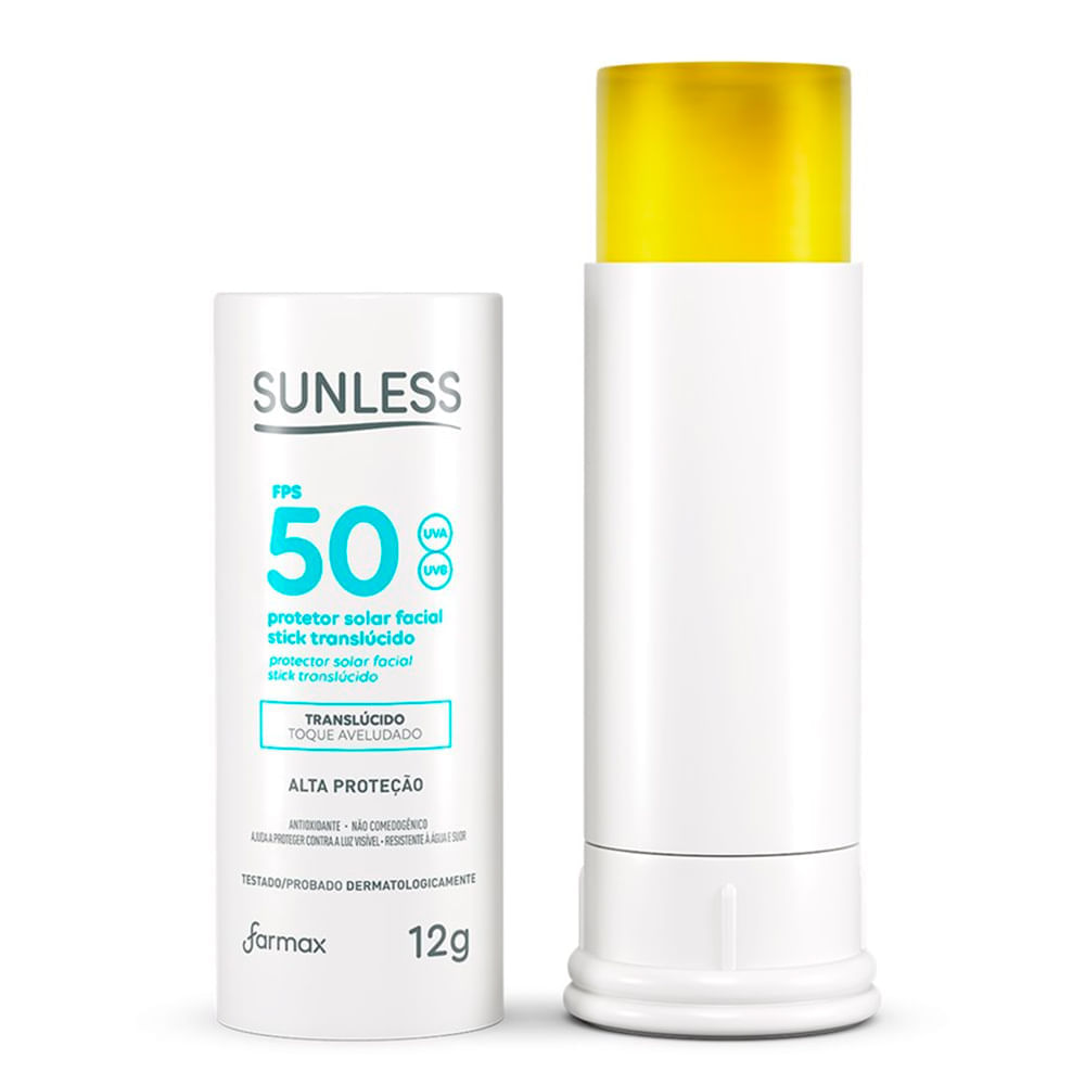 O Protetor Solar Facial Sunless Stick FPS50 Translúcido oferece alta proteção contra os raios UVA e UVB, sendo perfeito para peles muito sensíveis à queimadura solar. Com uma fórmula inovadora, ele se adapta a todos os tons de pele, garantindo uma aplicação fácil, rápida e com toque aveludado, sem deixar resíduos. Além disso, possui ação antioxidante e antissinais, sendo não comedogênico (não obstrui os poros) e testado dermatologicamente, tornando-o o aliado ideal para o cuidado diário da pele, protegendo e prevenindo o envelhecimento precoce. Mantenha sua pele protegida e saudável todos os dias! Benefícios:_x000D_