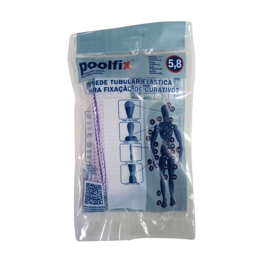 Poolfix Roxo - Calibre 5.8 é uma rede tubular elástica indicada para a fixação de curativos, compressas, curativos absorventes e medicamentos em diversas regiões do corpo.