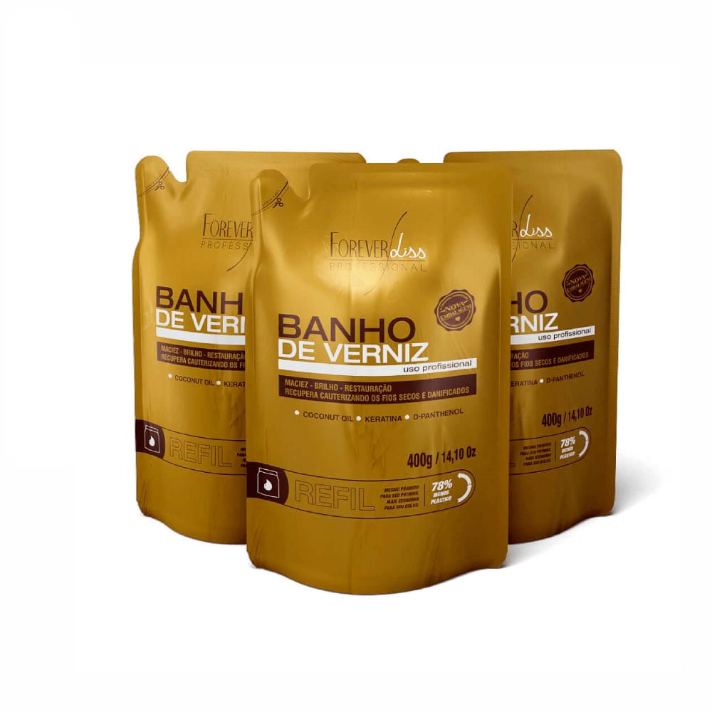 Refil Máscara Capilar Banho De Verniz Forever Liss 400g 3 Unidades