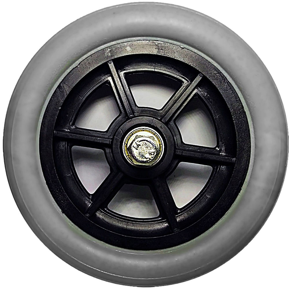 RODA COM PNEU MACIÇO 6" - COM ROLAMENTO - ORTOBRASTamanho: 6" 16 cm de diâmetroTipo: MaciçoCor: Cinza/PretoDois rolamentos blindados 608zPrópria para cadeiras OrtobrasVendido unitariamente As cores apresentadas no site são meramente ilustrativas e podem ou não corresponder com exatidão à tonalidade aplicada