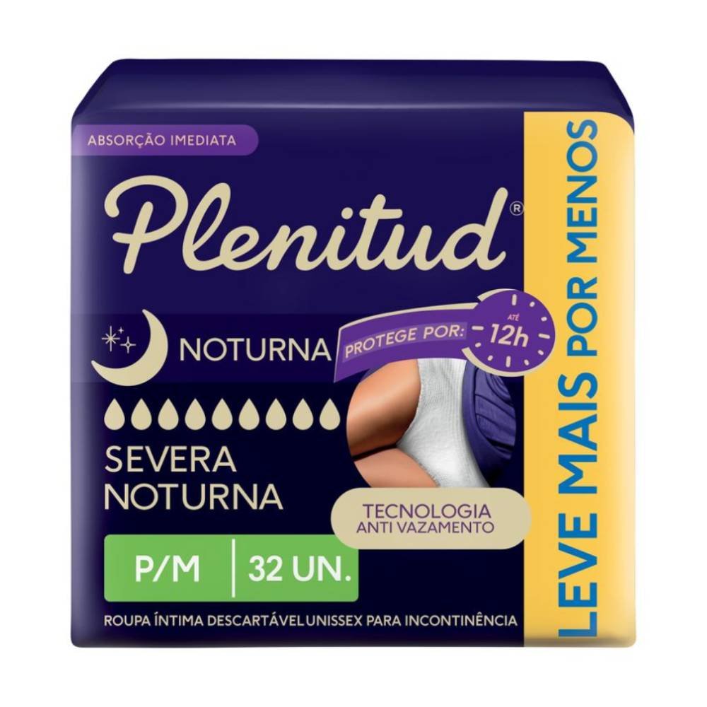 A Roupa Íntima Plenitud Noturna é uma fralda de vestir desenvolvida para oferecer alta proteção durante a noite em casos de incontinência intensa. Com nova embalagem e melhorias no produto, proporciona máxima suavidade e tecnologia que ajuda a evitar irritações na pele, além de ser fácil de vestir e retirar, como uma roupa íntima.