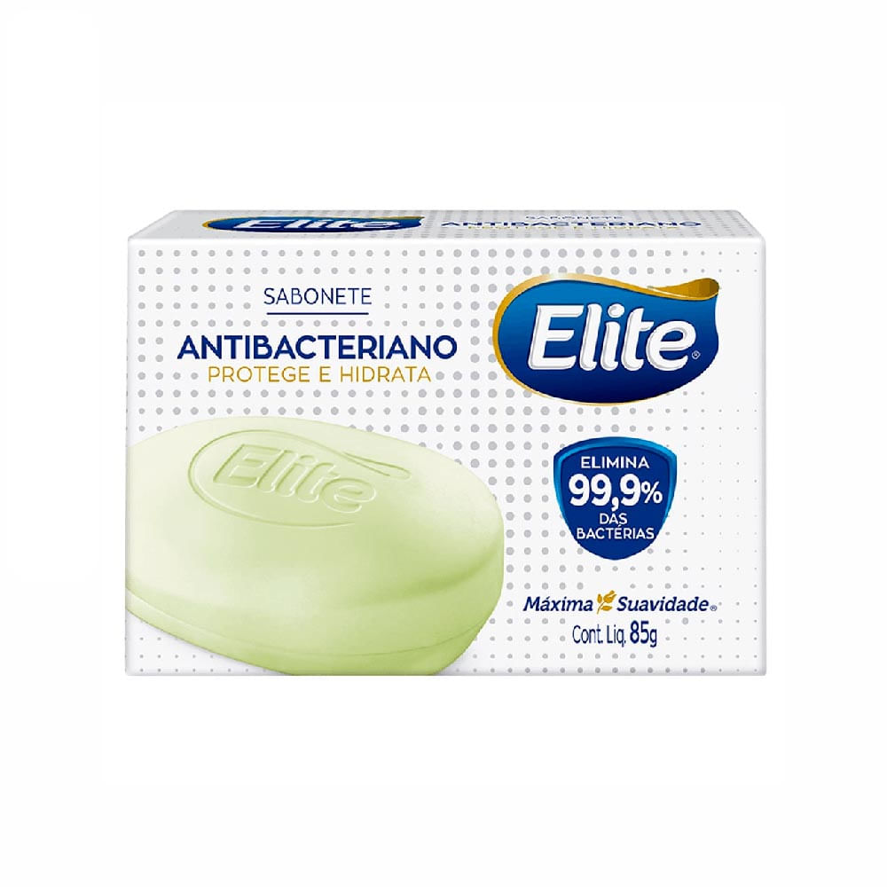 O novo sabonete em barra Elite Antibacteriano limpa, protege e hidrata a sua pele profundamente. Sua fórmula elimina até 99,9% das bactérias, oferecendo higiene e proteção sem agredir sua pele. Experimente a Máxima Suavidade Elite.