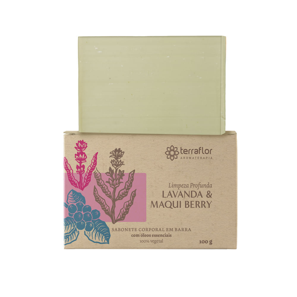 O Sabonete Natural Lavanda e Maqui Berry da Terra Flor promove limpeza e hidratação para todos os tipos de pele. É um produto multifuncional, rico em ativos naturais inovadores, como os óleos essenciais de lavanda e patchouli e o óleo de maqui berry que possuem ação antioxidante e deixam a pele suave, macia e com brilho natural. Pode ser usado em todo corpo.