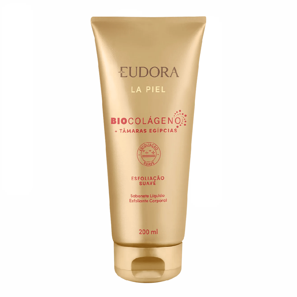 O Eudora La Piel Tâmaras Egípcias - Sabonete Líquido Esfoliante Corporal 200ml é um sabonete líquido esfoliante corporal com a fragrância de tâmaras egípcias. Ele está disponível em uma embalagem de 200ml.