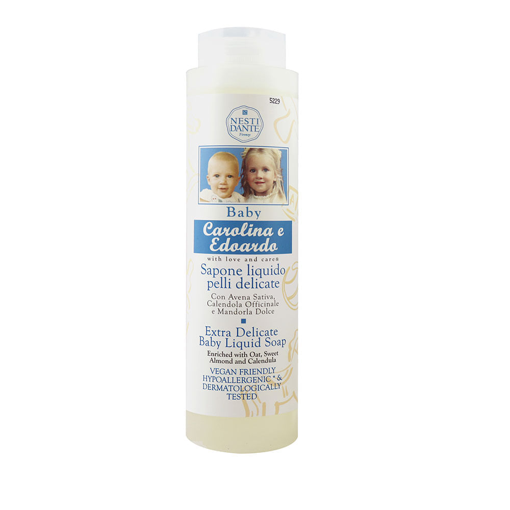 Sabonente Líquido Baby Carolina e Edoardo A pele de uma criança é macia e delicada o suficiente para merecer o mais gentil dos sabonetes. Nosso sabonete líquido Baby é um sabonete preparado com amor e carinho e enriquecido com aveia, proteína de amêndoa e extrato de calêndula para obter um sabão afetuoso na pele delicada de bebês, crianças e qualquer pessoa com uma necessidade natural de respeito.As amêndoas são uma ótima fonte de vitamina E e outros antioxidantes que nutrem a pele e reduzem os sinais de envelhecimento!A aveia além de hidratar a pele, ela cria uma barreira de proteção que dificulta o ressecamento.Nosso sabonete infantil é um produto hipoalergênico formulado e testado para evitar reações alérgicasBenefícios: • Vegano (Sem ingredientes de origem animal e não testado em animais);• Hipoalergênico;• Sem corantes;• Sem EDTA - Sem SLS;• Dermatologicamente testado.Indicação: • Sabonete líquido indicado para peles mais sensíveis. • Pode-se usar com as mãos ou com esponjas.• Perfeito para deixar sua pele suave e perfumada!