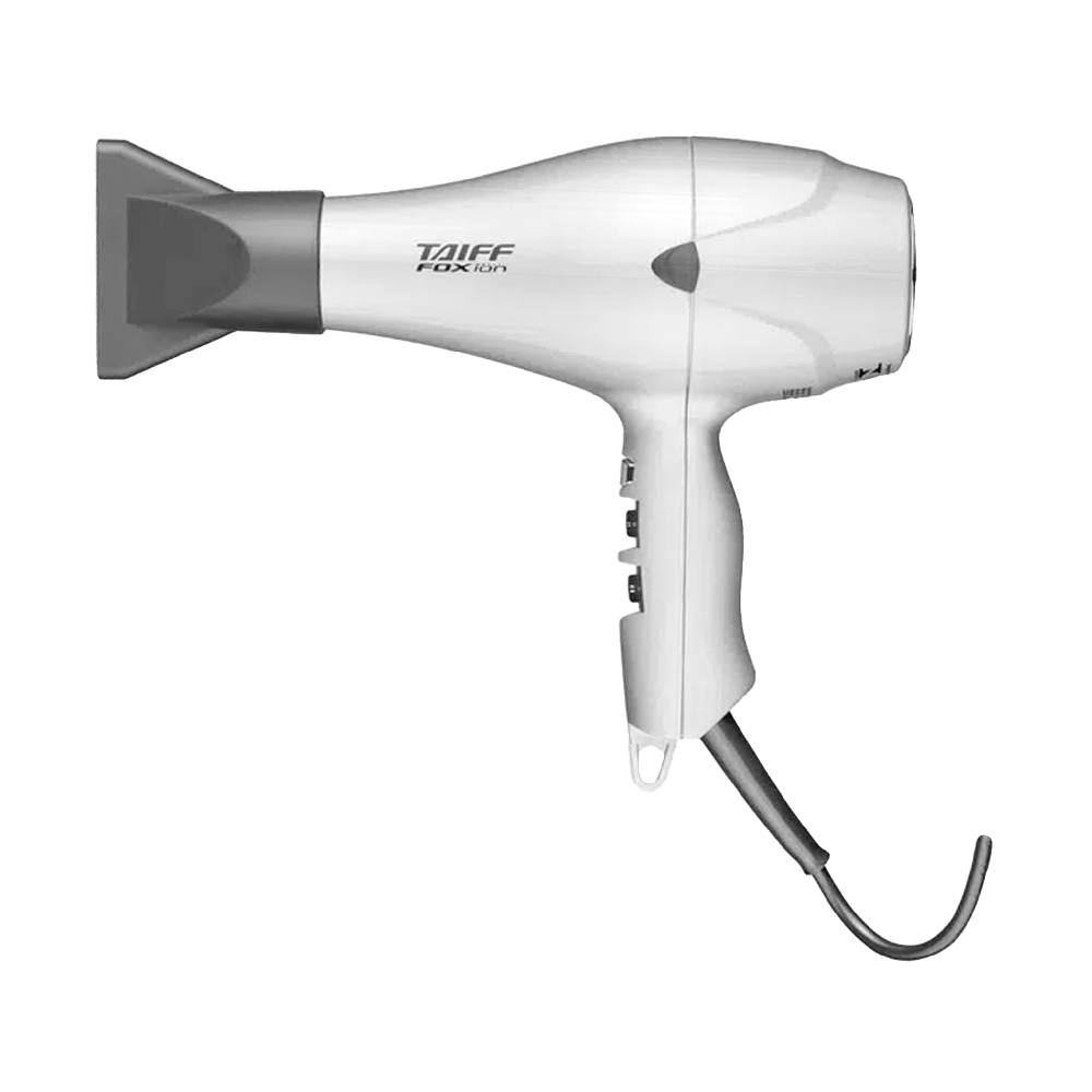 O Taiff Professional Fox Ion Prata 2000W - Secador de Cabelo 127V possui as seguintes especificações: - Potência de 2000W. - Tensão de operação 127V. - Tecnologia íon para redução de frizz. - Design na cor prata. - Peso e tamanho compacto para fácil manuseio.