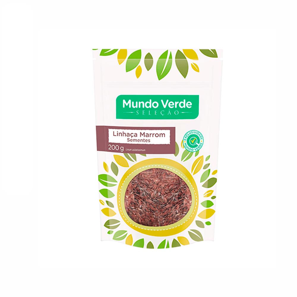 A Semente de Linhaça Marrom Mundo Verde Seleção 200g é fonte de fibras e ômega 3.