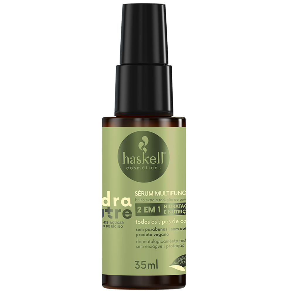 A linha Hidranutre é um tratamento 2 em 1 (Hidratação + Nutrição) indicado para todos os tipos de cabelo. A associação dos ativos cana-de-açúcar e óleo de rícino garante força e vitalidade aos fios e proporciona hidratação e nutrição aos cabelos. São dois tratamentos em uma única linha, a praticidade que faltava no seu dia a dia! A linha é composta por Shampoo, Condicionador, Máscara de Tratamento, Leave in e Sérum Multifuncional. Todos os produtos são veganos, sem parabenos e sem corantes. Direção olfativa: floral amadeirado.Sérum – Informações e Modo de Uso: O Sérum Hidranutre é low poo, vegano, sem corantes, sem parabenos e sem glúten. Promove hidratação, disciplina e luminosidade aos cabelos. Sua fórmula possui óleos de baixo peso molecular, que mantêm a leveza dos fios. Reduz as pontas duplas e tem ação antifrizz.Nos cabelos úmidos ou secos, aplique uma quantidade suficiente na palma das mãos e espalhe uniformemente o produto, do comprimento às pontas. Para umectação: nos cabelos secos, aplique o sérum, enluve os fios e deixe agir por 2 horas do dia, ou durante toda a noite, lavando os cabelos após o tempo de ação. Potencialize os resultados utilizando toda a linha Hidranutre.Benefícios da Linha: • Proporciona cuidado em dobro aos cabelos;• Aumenta o potencial hídrico e fornece nutrientes essenciais;• Garante força e vitalidade aos fios;• Promove brilho e maciezPrincipais Ativos: CANA-DE-AÇÚCAR• Hidratante e emoliente;• Rica em sais minerais e proteínas;• Promove alinhamento, reduzindo o frizz.ÓLEO DE RÍCINO• Fortalece os fios e tem alto poder hidratante;• Combate o envelhecimento dos fios;• Rico em ácidos graxos, que são antioxidantes;• Promove brilho e maciez.