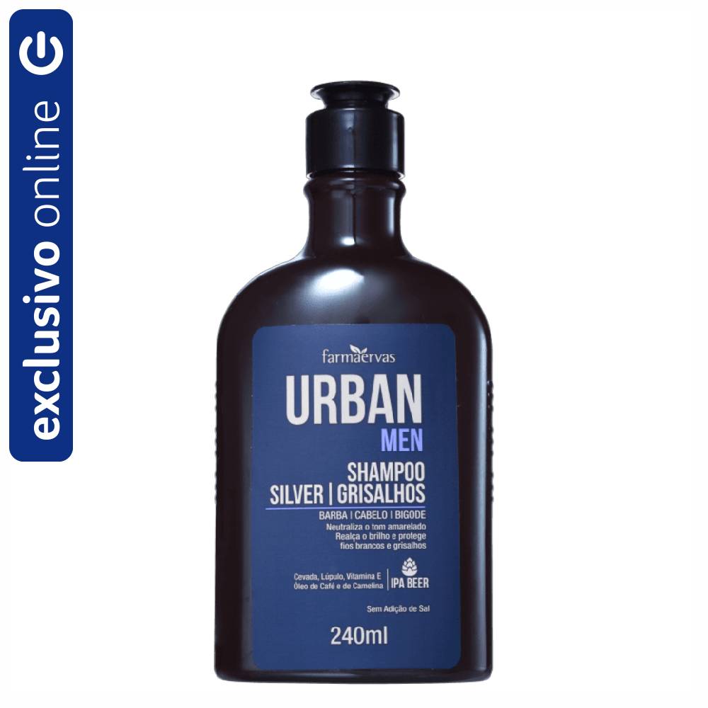 O Farmaervas Urban Men Silver Grisalhos - Shampoo Desamarelador é um shampoo desamarelador com 240ml de volume.