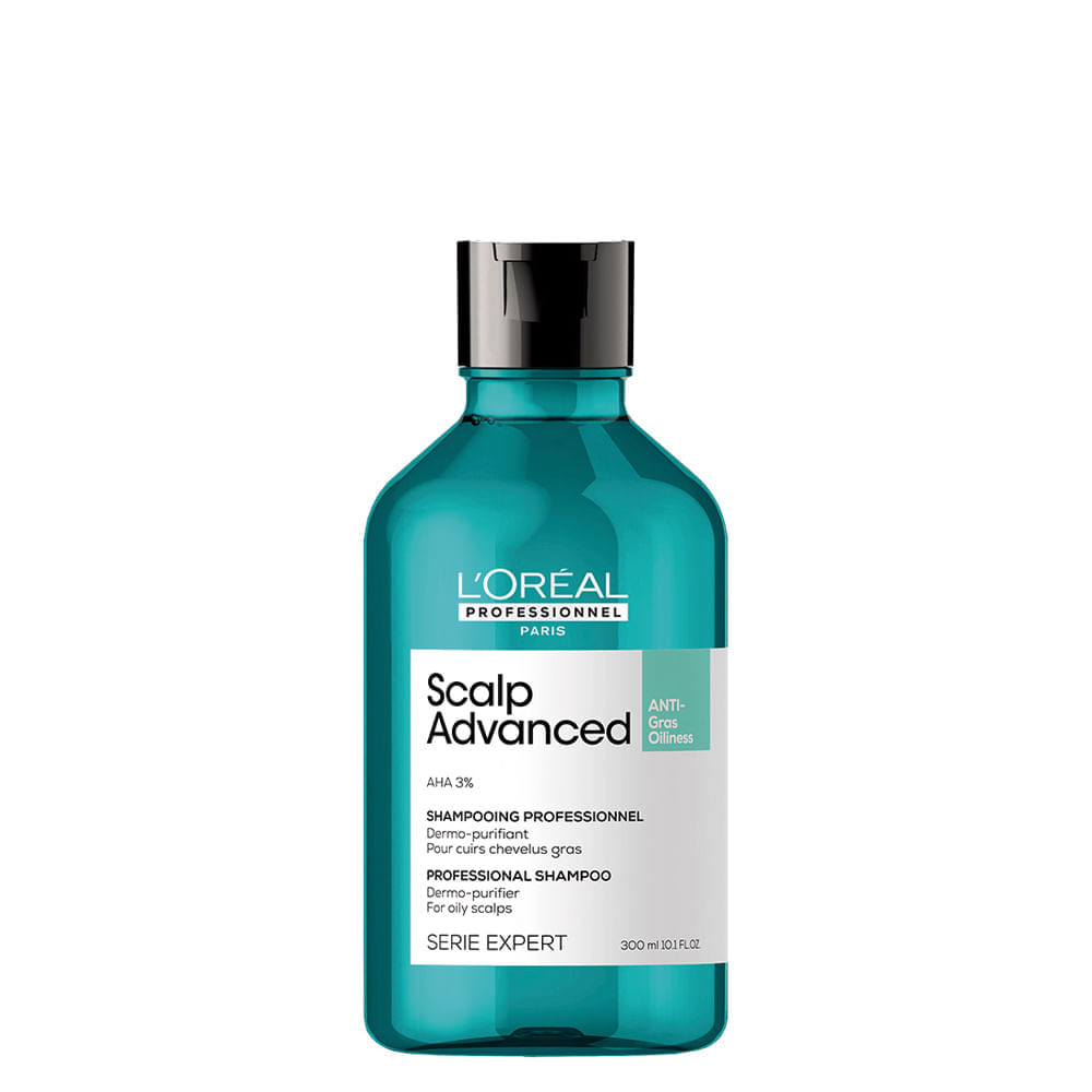 O Shampoo L'Oréal Professionnel Serie Expert Scalp Advanced Dermo Purifier purifica o couro cabeludo e a fibra de resíduo, suor e óleo para uma sensação de frescor e limpeza.