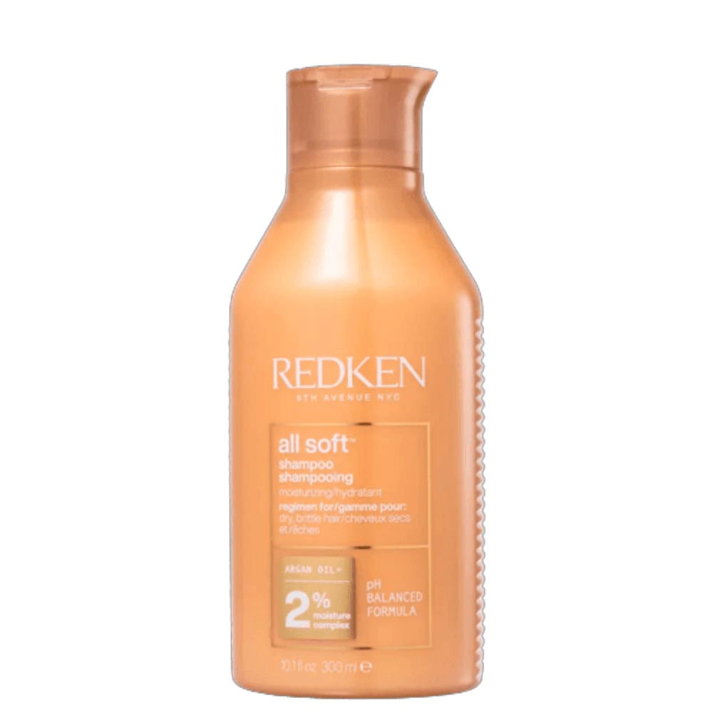 Shampoo para cabelos secos e opacos. Redken All Soft limpa delicadamente e promove hidratação profunda.