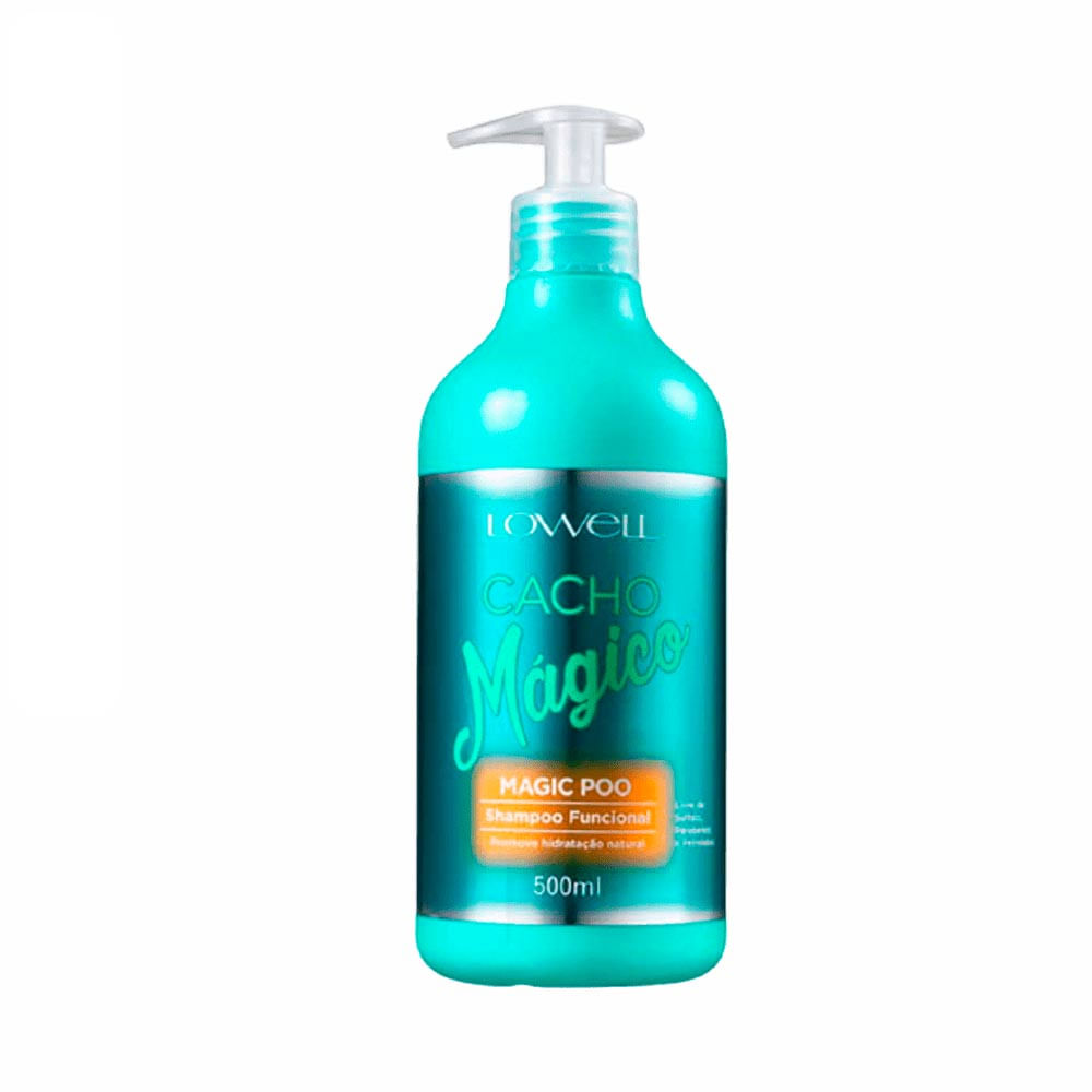 Shampoo funcional para cabelos cacheados. Suave, Lowell Cacho Mágico Magic Poo Shampoo ajuda a hidratar, proteger e disciplinar os cachos, além de deixar um toque sedoso e brilho bonito.
