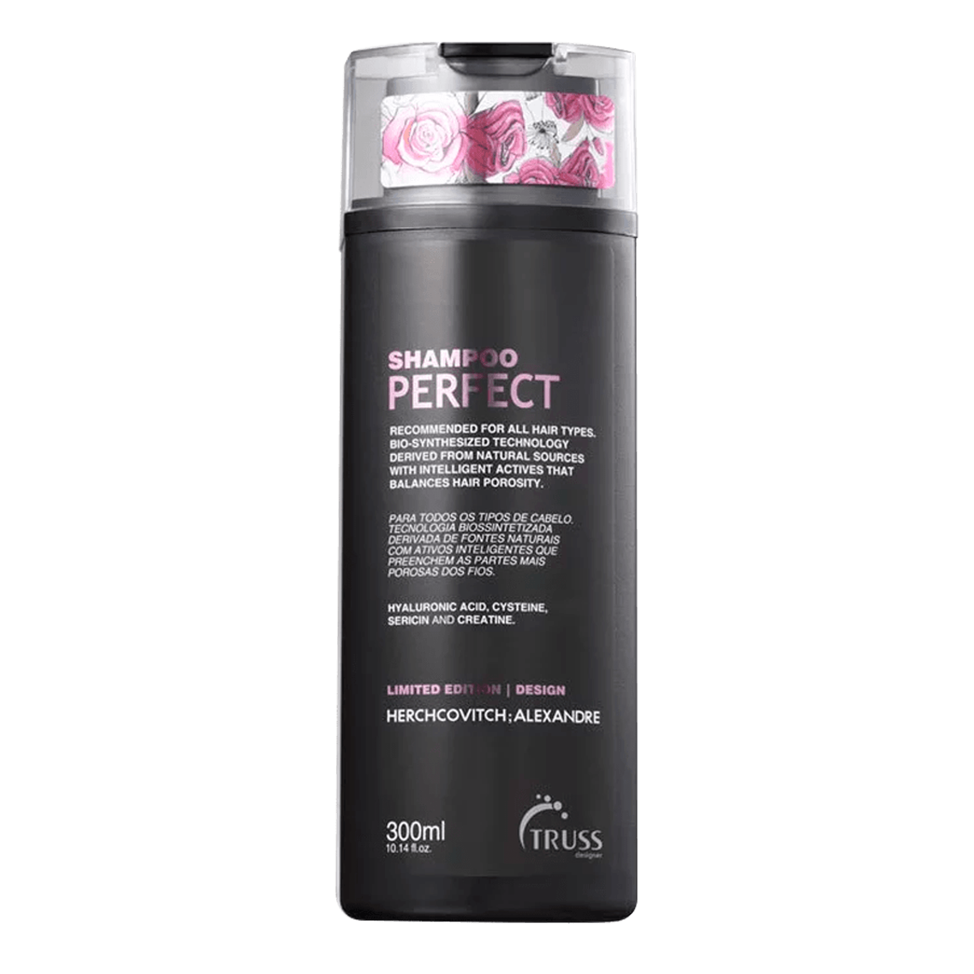 O shampoo Truss Alexandre Herchcovitch Perfect limpa, auxilia na restauração das cutículas danificadas pelas agressões diárias, hidrata levemente, impede a formação do frizz, ajuda no resgate da elasticidade e resistência dos fios.