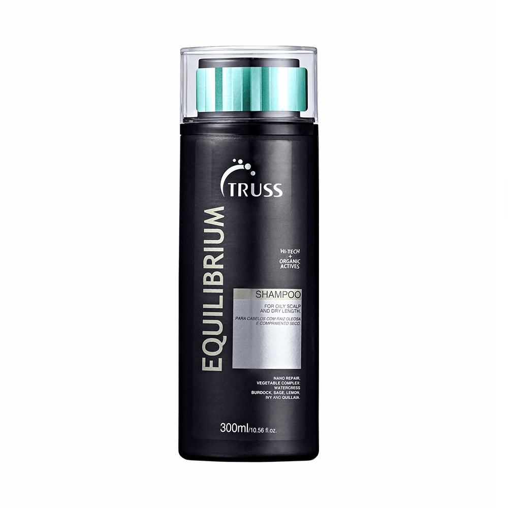 Truss Equilibrium - Shampoo 300ml O shampoo Truss Equilibrium limpa, hidrata, atua no couro cabeludo para regular o excesso de oleosidade da raiz, previne o ressecamento e o enfraquecimento prematuro das pontas ao equilibrar a umidade natural dos fios. Além disso, é perfeito para cabelos mistos a oleosos. Truss Equilibrium Shampoo possui uma fórmula poderosa com ação de Nano Repair são micropartículas que se depositam uniformemente sobre o fio de cabelo, formam filme de proteção, tem ação anti-frizz, protege a cor, garante brilho interno e toque sedoso. Complexo Vegetal que possui diversos ingredientes, como Cinchona, Arnica, Limão, Juá, Maçã, Uva, que tonificam, regulam a oleosidade, reduzem a caspa e as irritações, ajudam a cicatrizar e estimulam a circulação sanguínea. Panthenol que tonifica o couro cabeludo, além de criar uma camada elástica na fibra capilar que hidrata e restaura os fios. Soft Hair agente condicionante que proporciona força aos fios, desembaraça, combate o frizz, dá maciez e brilho. Melhora a penteabilidade e minimiza os danos à cutícula. Keratin formada por 18 aminoácidos, sua rápida absorção pela fibra recupera a resistência dos fios enquanto deixa o cabelo mais encorpado. Óleo de Argan é rico em Ômega 6 (ácido linoleico) e 9 (ácido oleico), revitaliza e melhora a flexibilidade dos fios. Óleo de Avocado é rico em ácidos graxos, aminoácidos e vitaminas A, B1, B2, C e D, é um potente filtro solar, além de ser altamente emoliente. Óleo de Abacaxi é rico em vitaminas e ácidos graxos, hidrata, diminui o frizz e protege dos raios solares. Truss Equilibrium Shampoo limpa, controla a oleosidade, previne o ressecamento e garante fios saudáveis, macios e com muita vida. Especificações: Dica de Aplicação: Aplique o shampoo sobre o cabelo úmido. Massageie gentilmente e deixe agir por 2 minutos. Em seguida, enxágue. Repita o procedimento, caso necessário. Contém: Truss Equilibrium - Shampoo 300ml