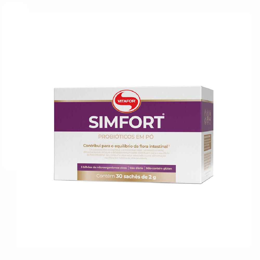 O Simfort Vitafor, é um suplemento probiótico composto por 5 principais microrganismos vivos, presentes na microbiota intestinal, sendo eles: Lactobacillus acidophillus, Lactobacillus casei, Lactococcus lactis, Bifidobacterium lactis e Bifidobacterium bifidum.