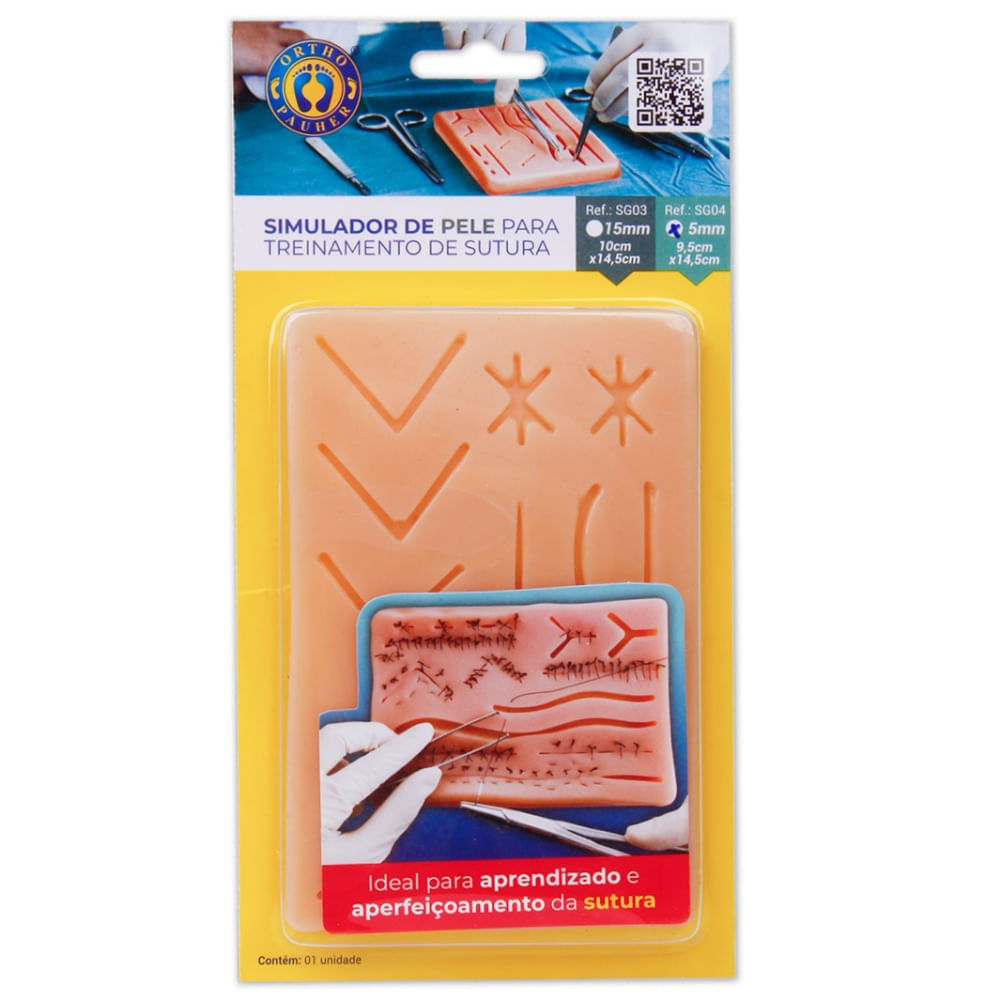 O Simulador de Pele para Treinamento de Sutura SG04 Ortho Pauher é ideal para o ensino, treinamento e aperfeiçoamento de técnicas de sutura. É uma ótima maneira de aplicar diferentes tipos de técnicas de sutura, permitindo que os usuários pratiquem suturas corretas e façam incisões cirúrgicas.