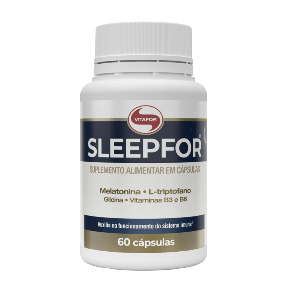SLEEPFOR MELATONINA + L-TRIPTOFANO VITAFOR 60 CÁPSULAS é um suplemento alimentar em cápsulas desenvolvido para auxiliar na regulação do sono, com uma fórmula completa à base de melatonina, L-triptofano, glicina e vitaminas B3 e B6. Ideal para quem busca noites mais tranquilas e recuperação física e mental adequada.