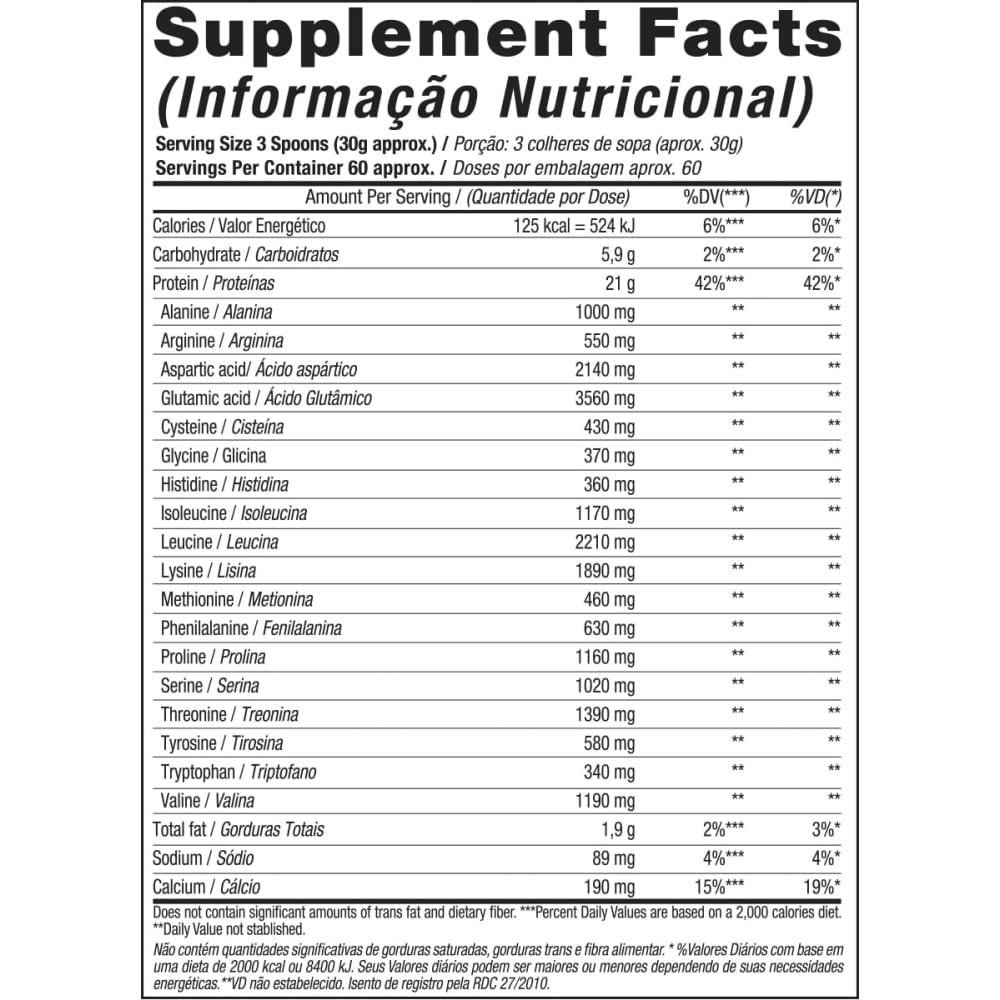 O WHEY 100% HD BLACKSKULL USA™ possui a seguinte composição: