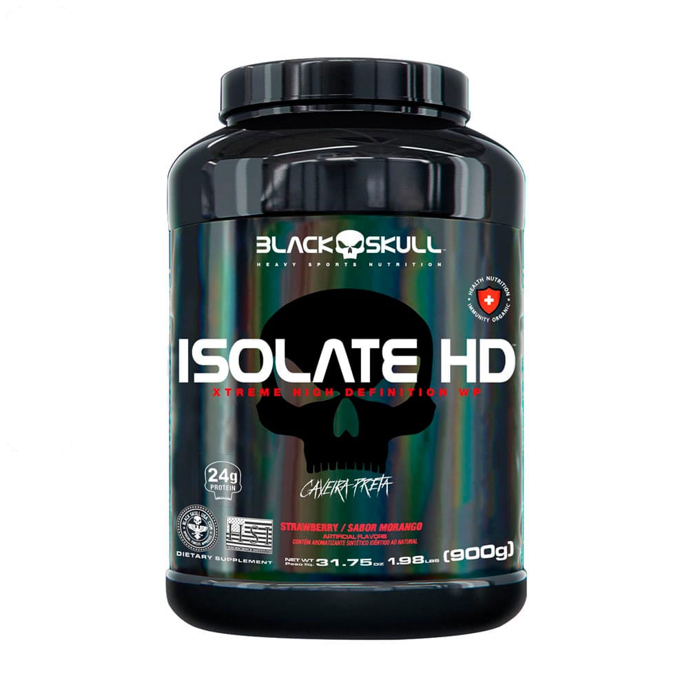 Suplemento Alimentar De Whey Protein Isolado Isolate Hd Caveira Preta 900g Morango