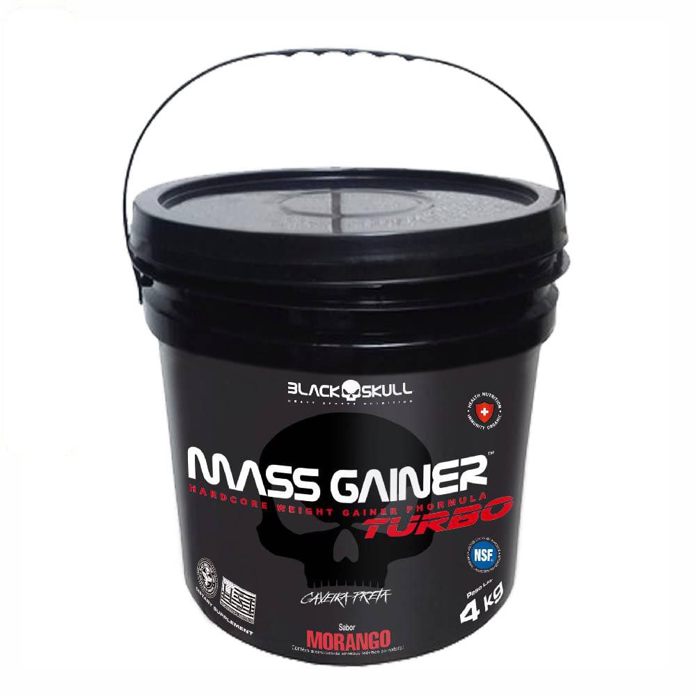 Suplemento Alimentar Hipercalórico Mass Gainer Morango Turbo Black Skull Balde Colecionável 4kg