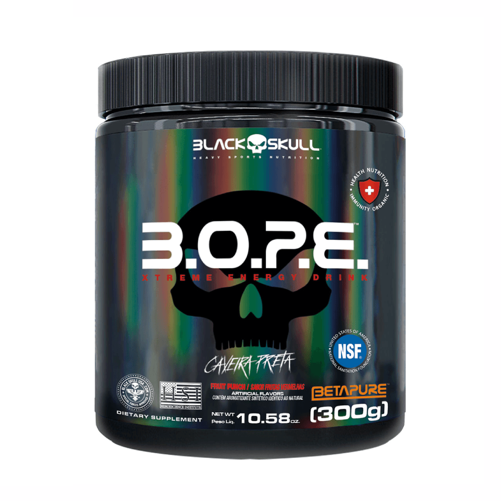 O B.O.P.E™ é um pré-treino que contém cafeína, arginina, taurina, creatina e maltodextrina em sua fórmula.