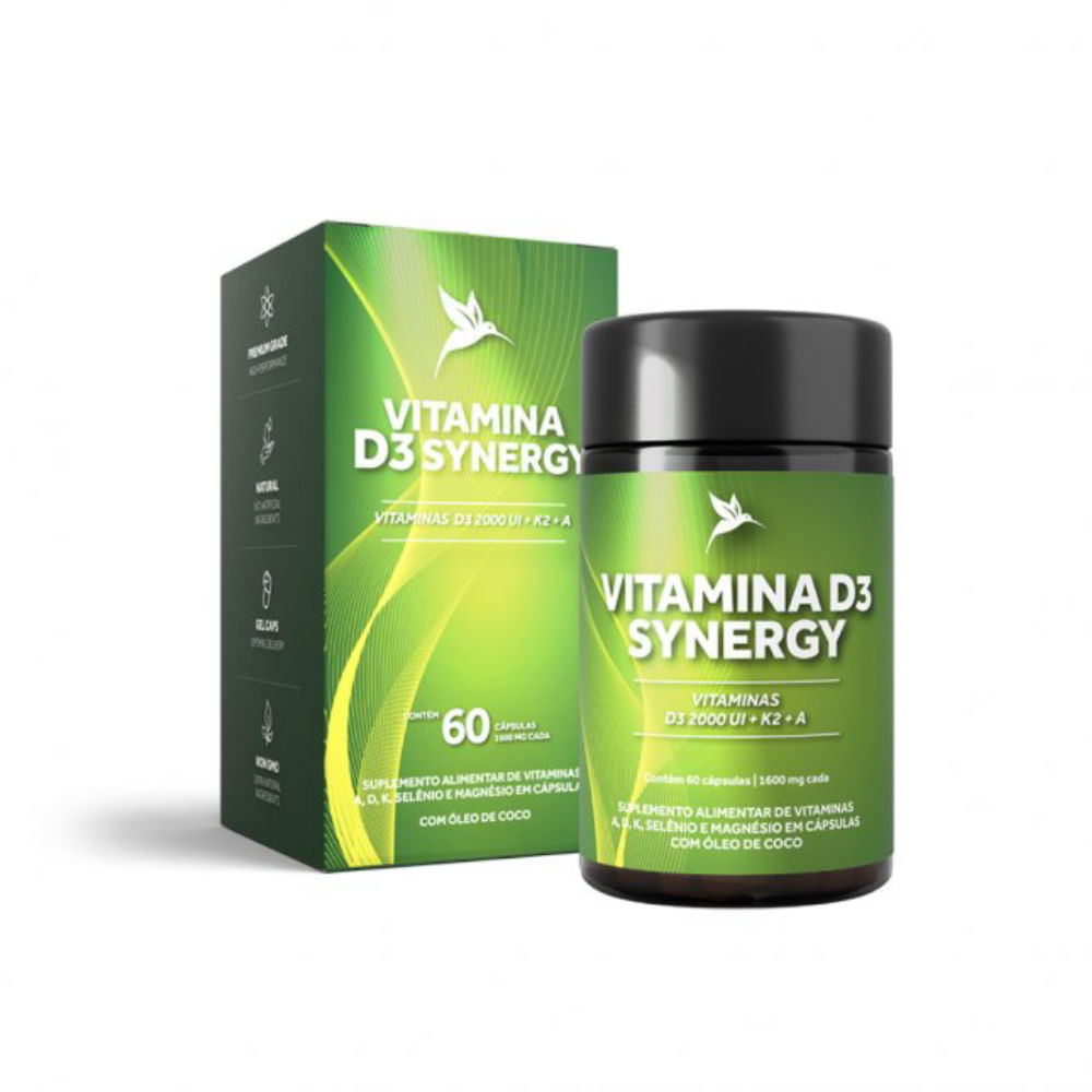 A fórmula de Synergy, além de vitamina D3, contém Vitamina A, Vitamina K2, Magnésio e Selênio.
