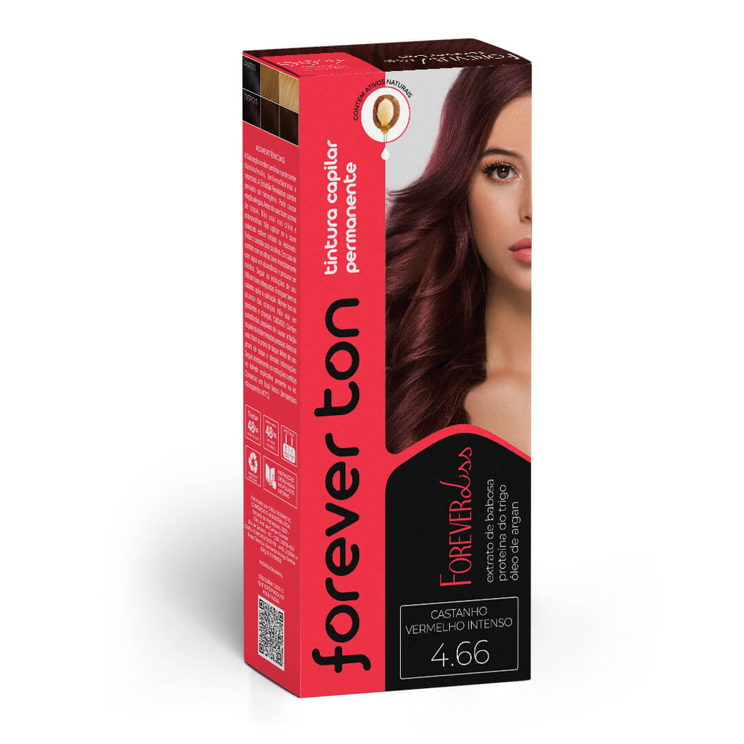Tinta de Cabelo Borgonha Castanho Vermelho Intenso 4.66 Forever Ton