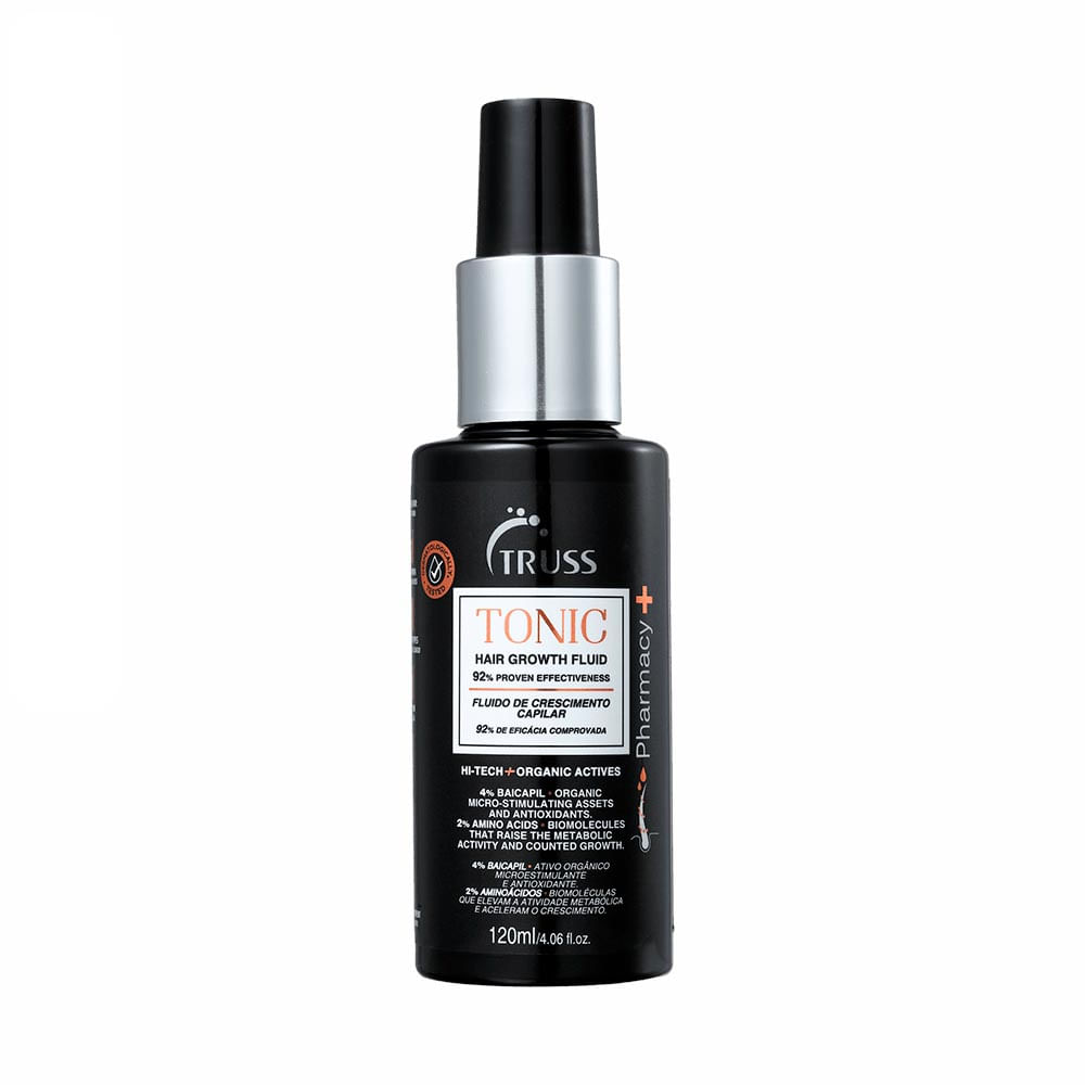 Tônico para cabelos com quedas e ralos. Truss Tonic estimula a circulação sanguínea e fortalece os fios.
