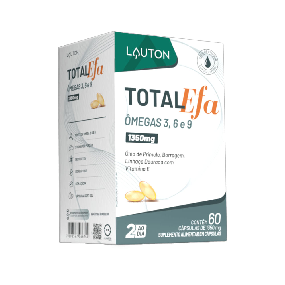 O Total EFA é um suplemento alimentar completo que combina óleos vegetais funcionais com Ômega 3, 6 e 9, além de vitamina E. Ele auxilia na proteção contra os danos causados pelos radicais livres e promove benefícios à saúde geral.