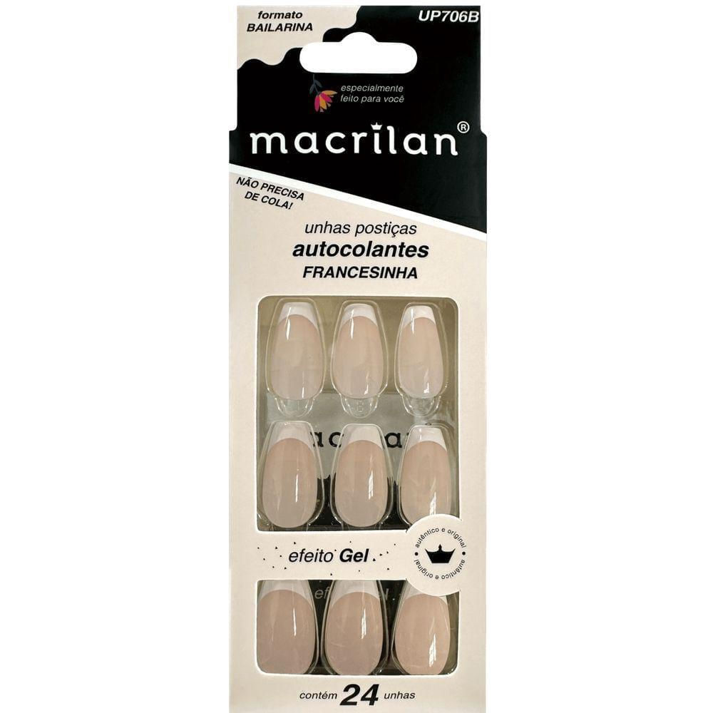 Unhas Postiças Macrilan Autocolantes Tamanho Médio Formato Bailarina Francesinha Up706b