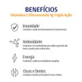 A Vitamina C Tripla Ação Panvel Vita é um suplemento alimentar com Vitamina C, D e Zinco sabor laranja, com nutrientes que auxiliam no fortalecimento do sistema imune contra vírus, infecções, mudanças climáticas e estresse. Os comprimidos efervescentes dissolvem rapidamente na água e é facilmente absorvido pelo organismo