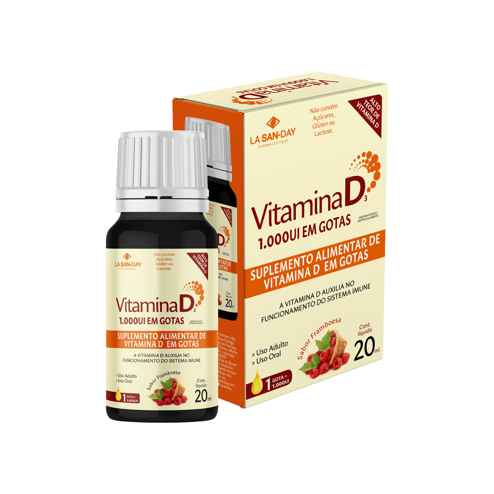 A Vitamina D3 1.000UI 20ml – Sabor Framboesa é um suplemento alimentar em gotas, desenvolvido para auxiliar na manutenção da saúde óssea, imunológica e no equilíbrio geral do organismo. Na prática, é conhecida como a "vitamina do sol", essencial para diversas funções do corpo.