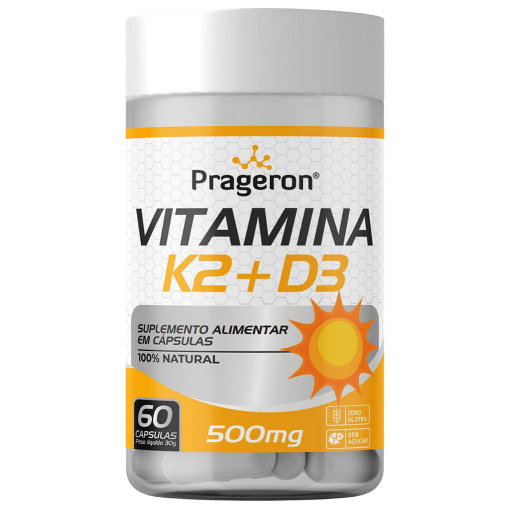 A Vitamina K2 + D3 é um suplemento disponível em forma de 60 cápsulas de 500mg, contendo uma combinação das vitaminas K2 e D3, conhecidas por seus benefícios para a saúde óssea e cardiovascular.