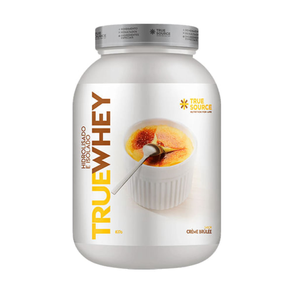 Informações técnicas sobre o produto: O Whey Creme Brulle, da True Source, 837g, é formulado com whey protein hidrolisado e isolado, com adição de colágeno Verisol® e MCT.